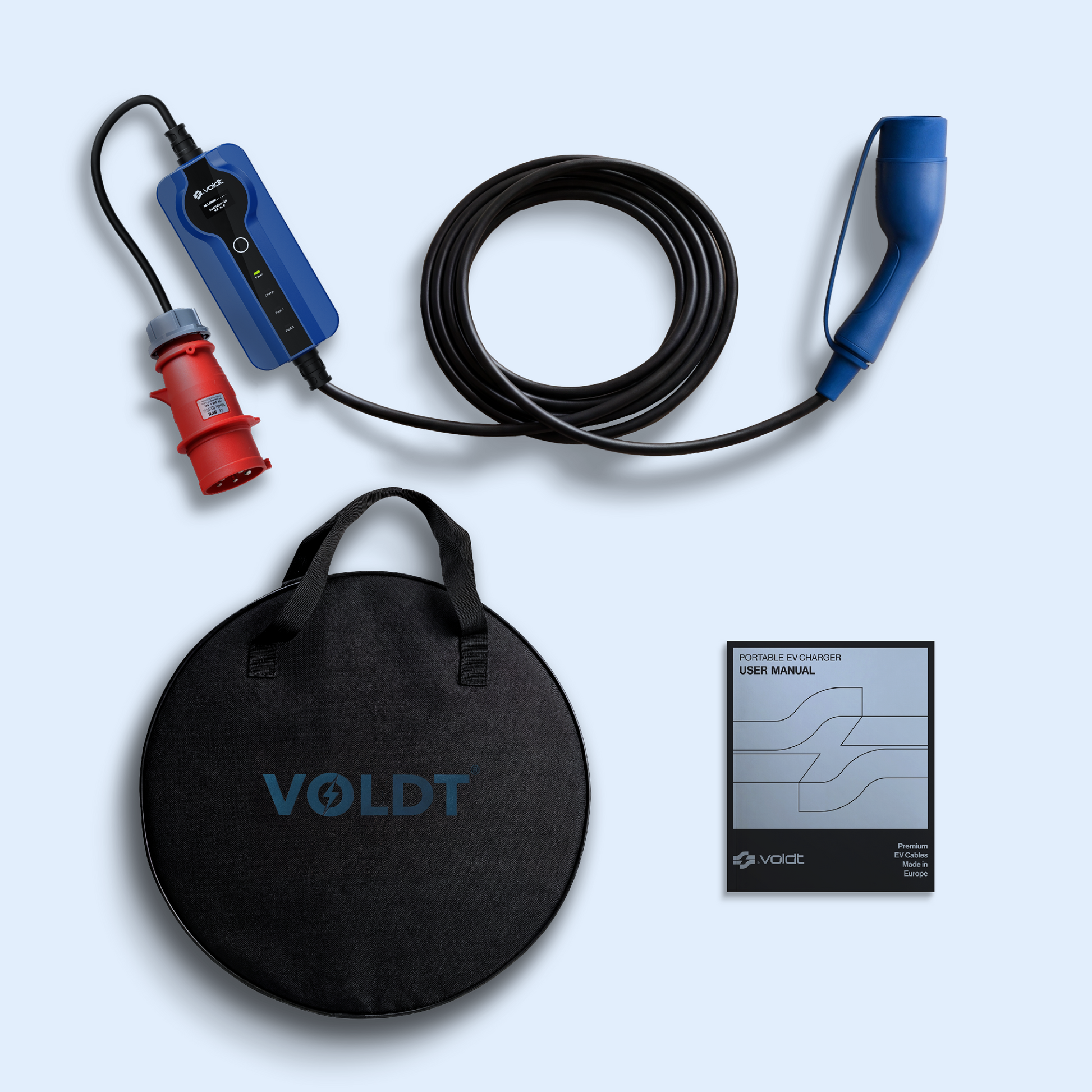 Un enchufe CEE de 16A se usa comúnmente en instalaciones monofásicas de 230V o trifásicas de 400V, y puede entregar hasta 11 kW. El de 32A puede alcanzar los 22 kW, ideal para configuraciones más exigentes como el cargador móvil Voldt® Tipo 2 con enchufe CEE 32A. También requiere cableado más grueso —habitualmente 6 mm² para 32A frente a 2,5 mm² para 16A— para una carga segura.